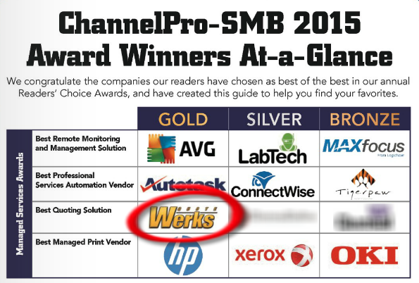 QuoteWerks is the Gold Winner in the Quoting Solution Category in the 2015 ChannelPro Readers’ Choice Awards