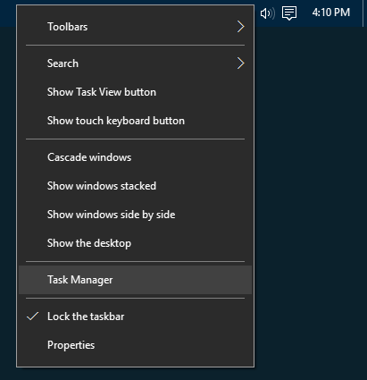 3. The Taskbar. If you right-click on the Taskbar at the bottom of the screen, there’s an option you’ve probably missed time and time again: Task Manager! This is the easiest method to use if your hands are off the keyboard.