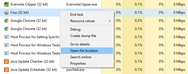 Just right-click on any process and select Open File Location. This will take you directly to the folder that contains the process’s executable file (i.e. the same file that shows up under the Process Name column if you toggled that on). Super fast, super convenient.