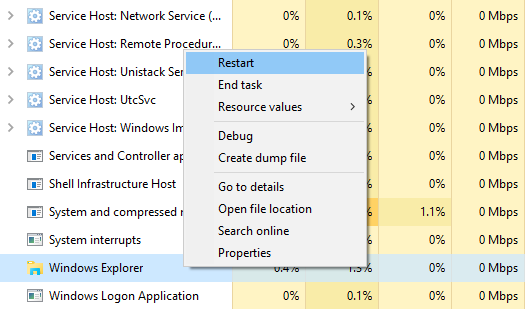 Sometimes you may find that some parts of your system aren’t responding (e.g. Taskbar, File Explorer, Start Menu, etc.) while other applications are running just fine. Restarting your computer will solve the issue, but it may be enough to restart Windows Explorer instead.