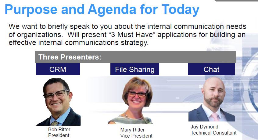 In a webinar that First Direct Corp. presented with HEAT Software, makers of GoldMine software, we delved into 3 applications that we believe are a “must have” for organizations to manage communications internally. Here is a link to this recorded event.