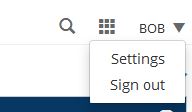 Users access their settings from the “drop down” in the upper right corner of their GoldMine Web Screen, in the same location where you log-out.