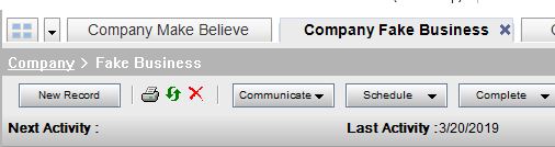 Most GoldMine users are aware that they can have open multiple application windows (TABS). The TABS can be opened in the order of the user’s preference. By default, the Record Tab (Company/Contact) is the first tab. I prefer to keep open the following other TABS: Search Center, Activity List, Calendar and Email Center. A user clicks to the TAB they wish to be “focused” on by clicking on either the Navigation Pane or the Tab itself.