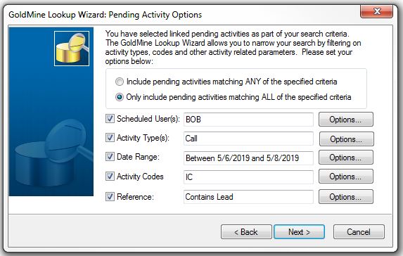 I used GoldMine’s Query Builder to create a list of activities for which I was then able to use an email to touch-base with, rather than a direct phone call. Because I queried to create the list based on certain criteria the activities all shared similar attributes. That made it possible to do a broadcast email and still make the email relevant and personalized.