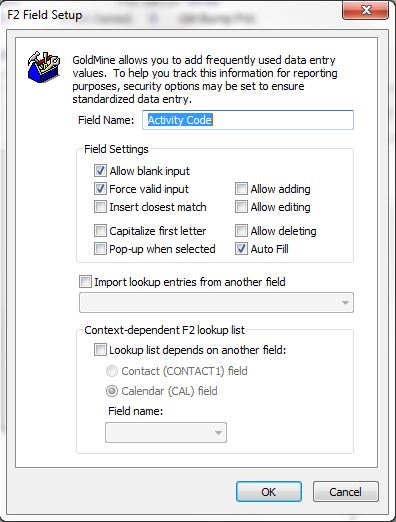 In the early days of computers, space for both RAM and hard-drive storage was extremely limited. In order to conserve space, programmers had to be creative. To limit characters, the developers and programmers of GoldMine came up with the clever idea of using shorter (3 character) fields to capture and store certain data. They allowed users to select from a “Lookup List” of those codes which displayed a longer definition of what each code stood for.