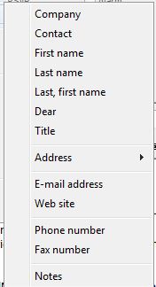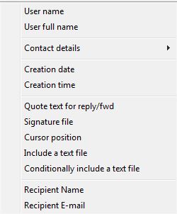 When designing a GoldMine template the email toolbar offers you two menus from which to select fields: